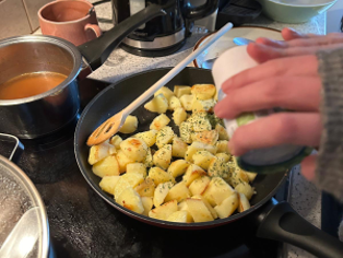 Am Ende würzen Sie die Kartoffeln mit Salz und Petersilie.