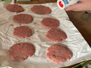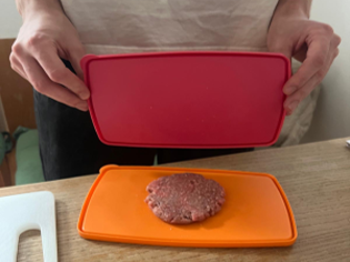 Drücken Sie mit 2 Tupperdeckeln jede Fleischkugel platt (ca. 1- 2cm dick).