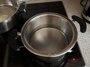 Befüllen Sie einen Topf 1/2 voll mit Wasser. Bringen Sie diesen Topf mit 1 Prise Salz zum Kochen.