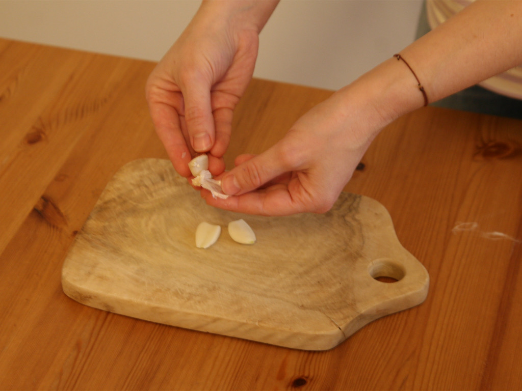Schälen Sie die Knoblauchzehen mit den Fingern.