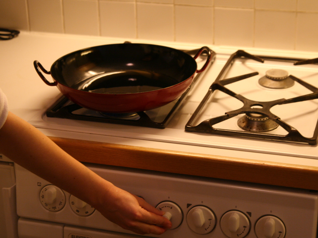 Drehen Sie die passende Herdplatte für die Pfannengröße auf mittlerer Hitze auf.
