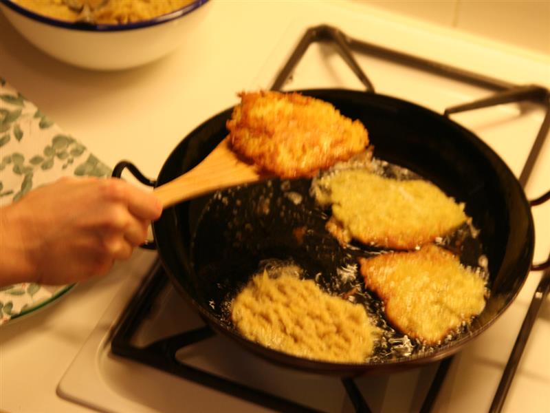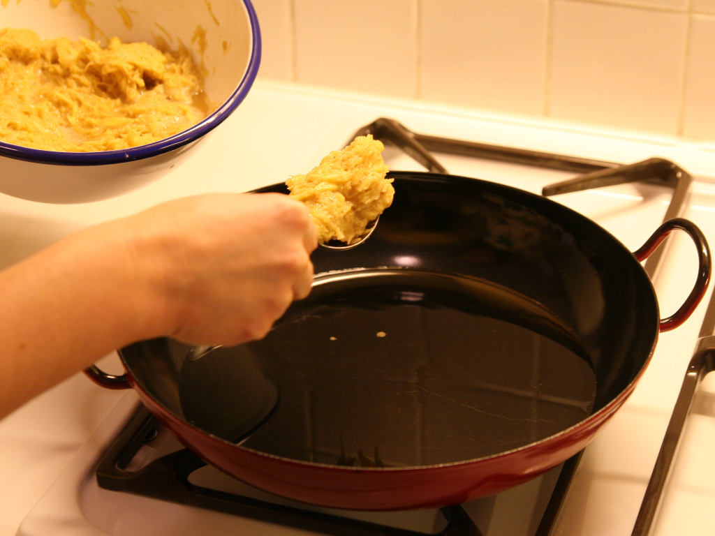 Wiederholen Sie die Schritte („Masse in die Pfanne legen“ bis „Puffer abtupfen“), bis die ganze Masse aufgebraucht ist.