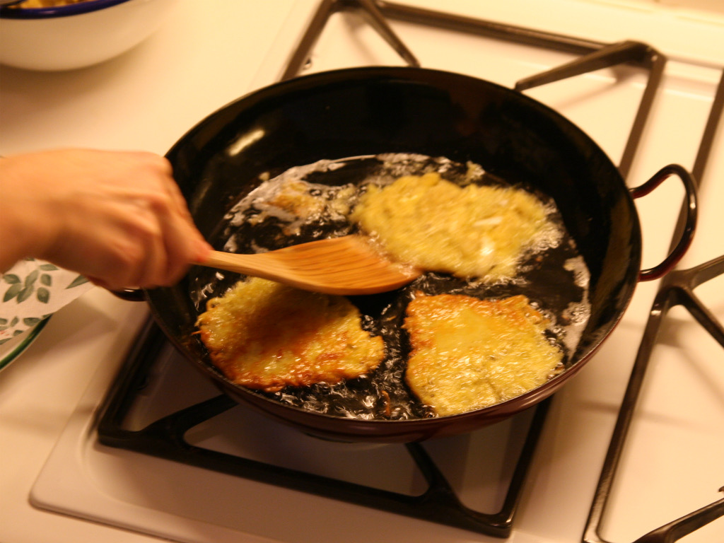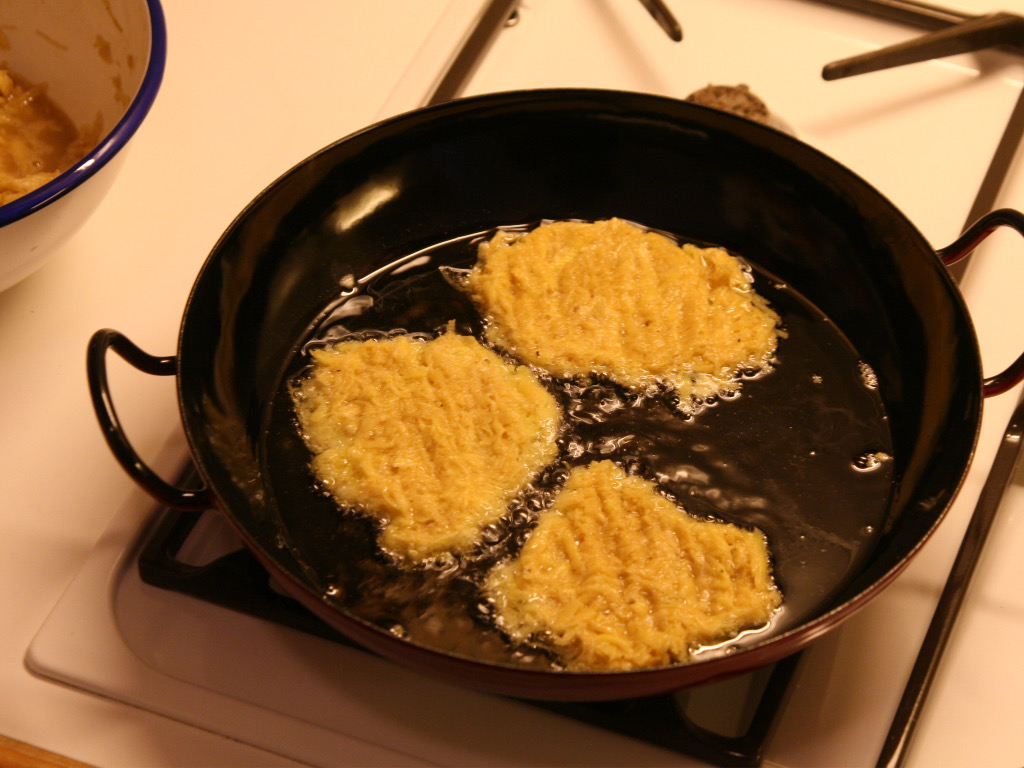 Braten Sie jeden Puffer nochmals ca. 3 Minuten bis er goldbraun ist.