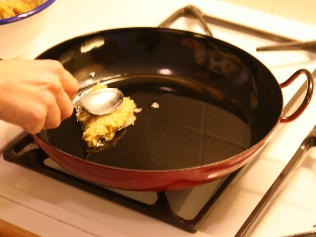 Sobald das Öl leicht blubbert, ergreifen Sie einen Esslöffel.