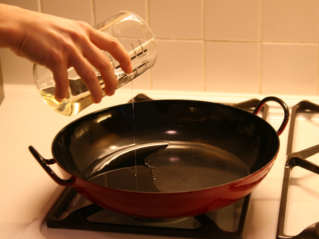 Gießen Sie das Sonnenblumenöl in die Pfanne.