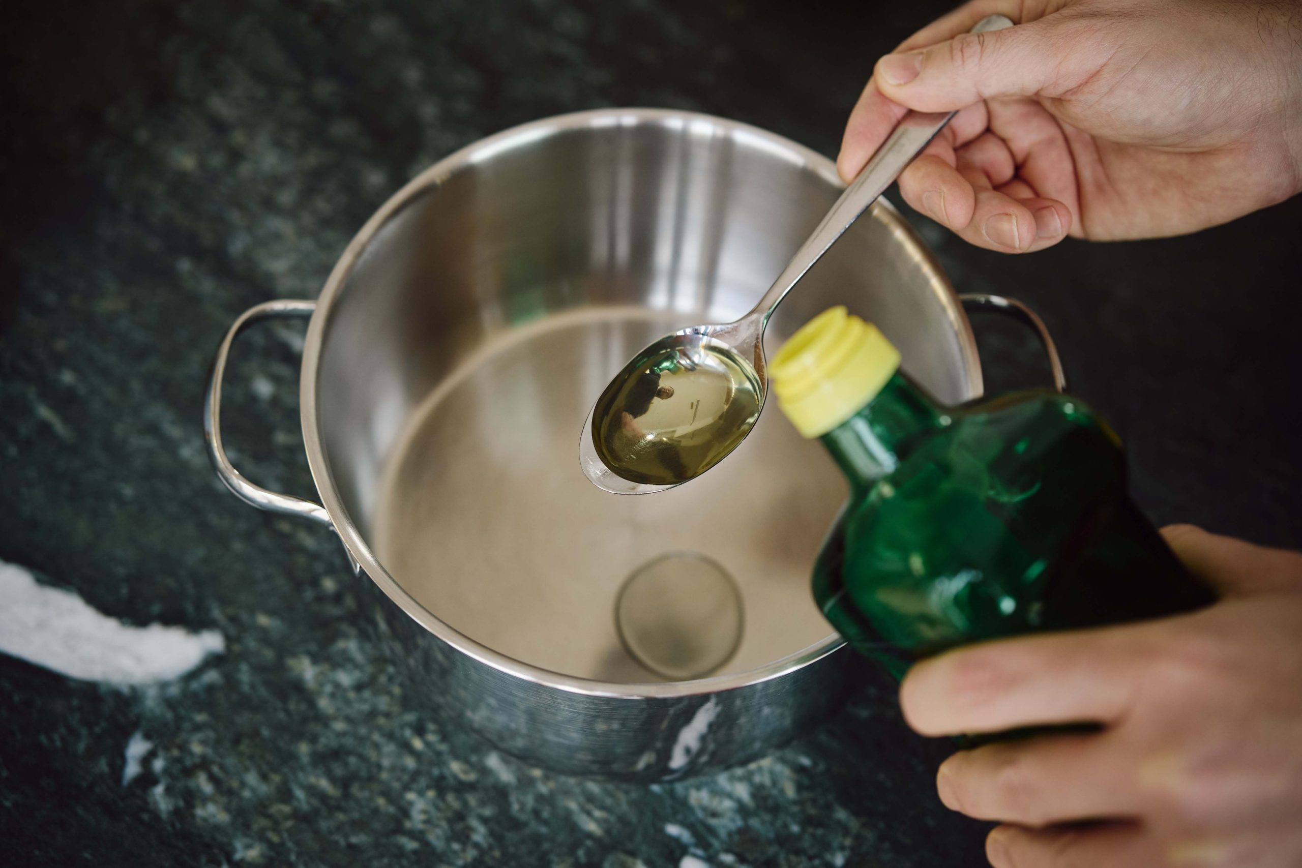 Geben Sie einen Esslöffel Essig in den Topf.